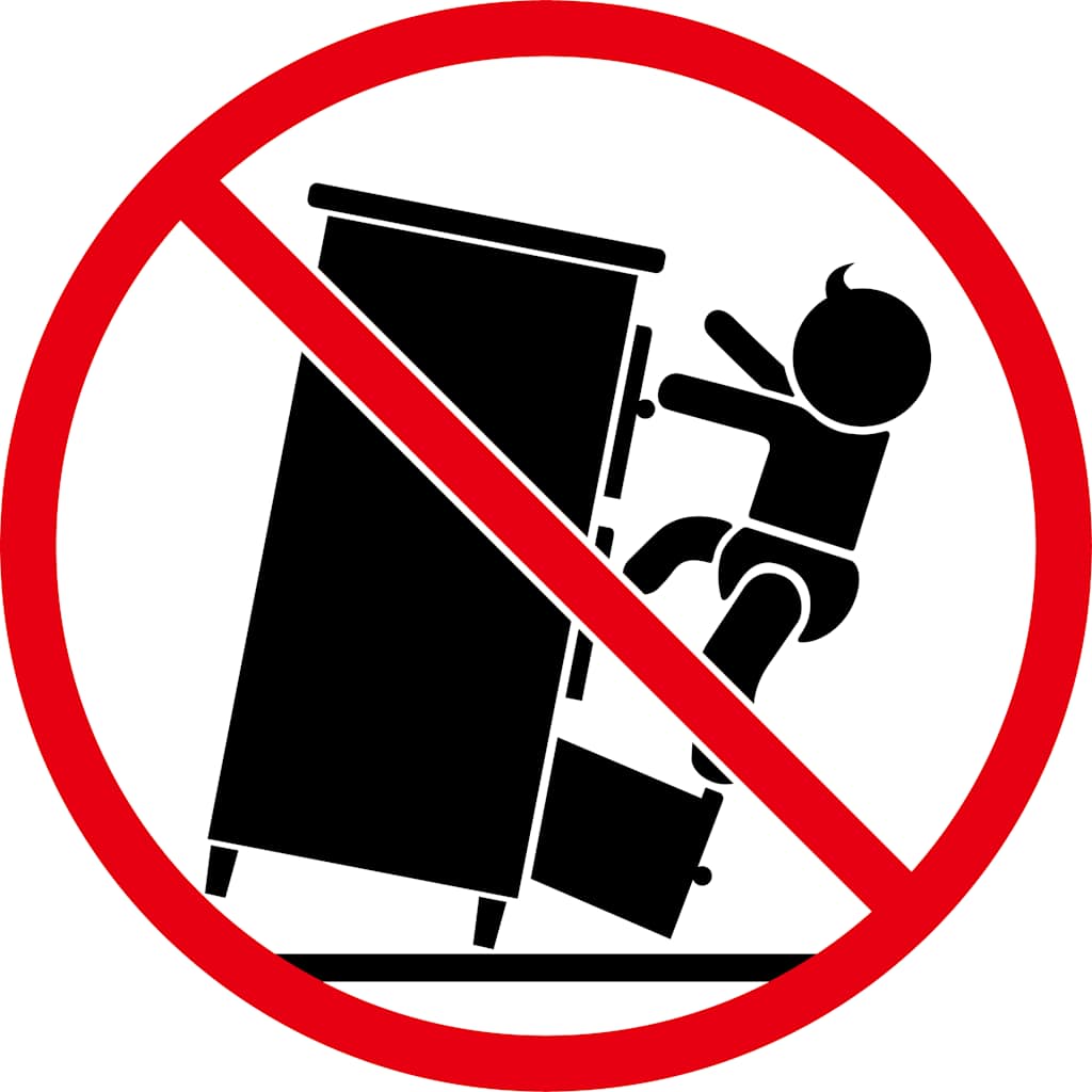- Om te voorkomen dat het product omvalt, moet dit worden gebruikt met het meegeleverde bevestigingssysteem voor aan de muur.
