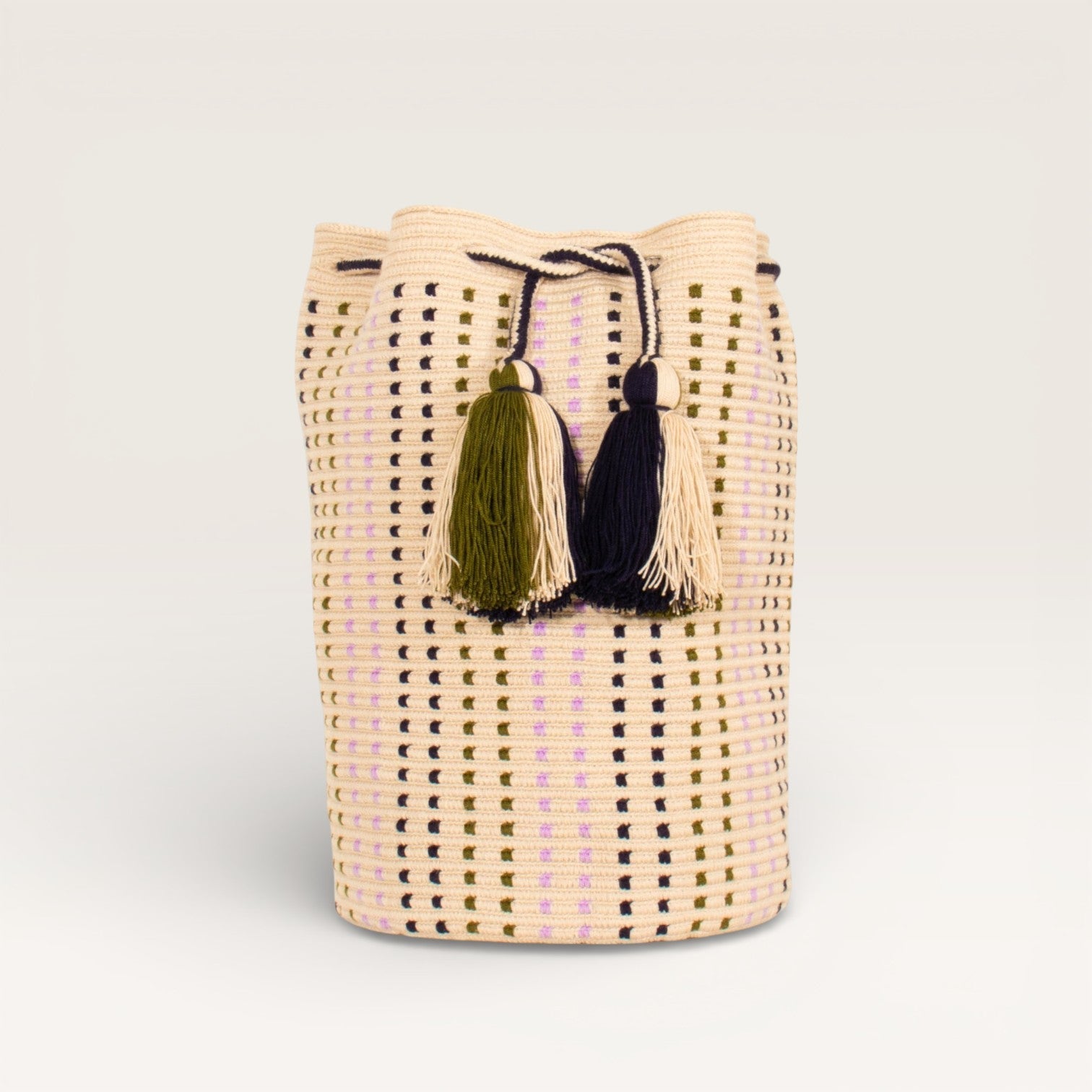 The check backpack is designed to be a perfect mix of edge and ease. Known as 'Capoterra' to the Wayuu artisans, this backpack is made entirely by hand using techniques that have been passed down through the generations.