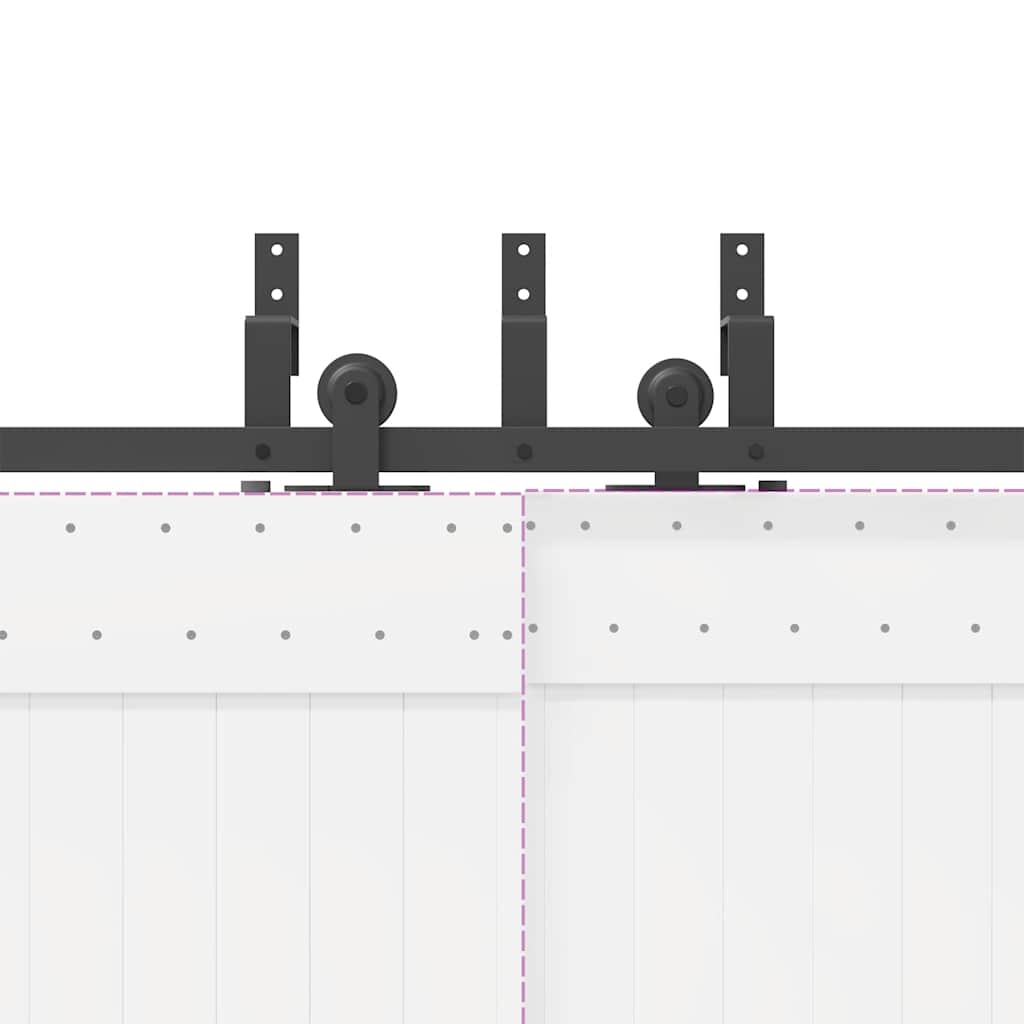 Met deze beslagset voor schuifdeuren kunt u eenvoudig dubbele rails instellen voor een paar deuren die voor en achter elkaar kunnen schuiven.