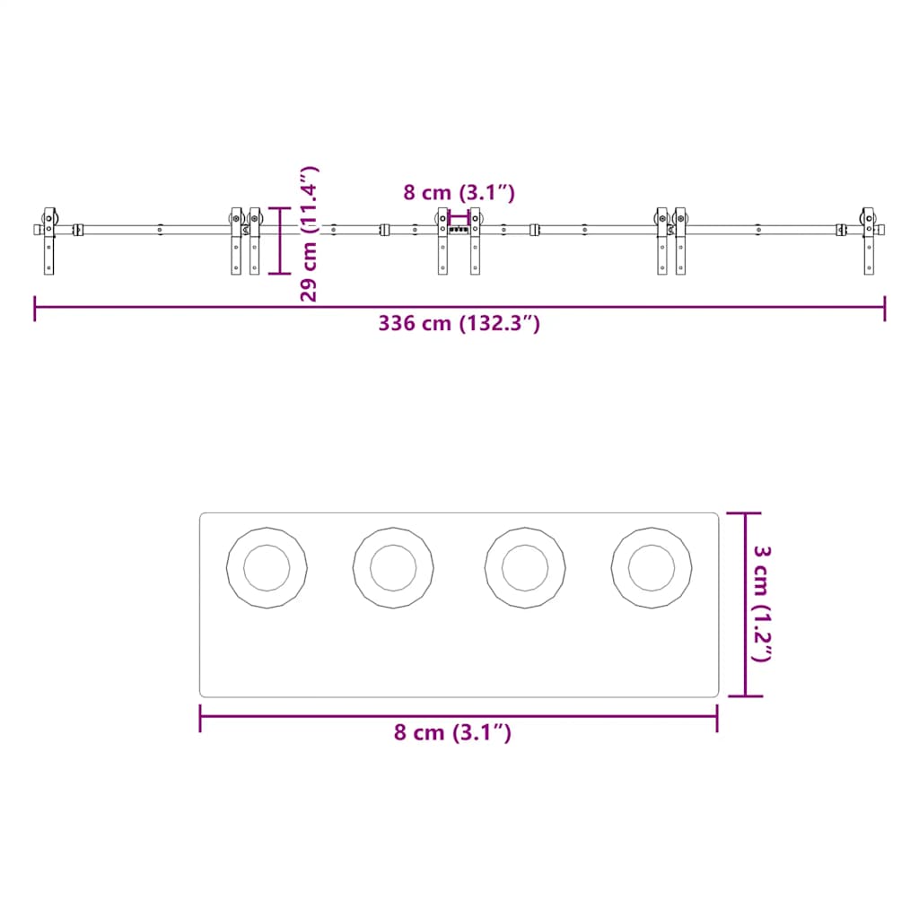 - Totale lengte van de schuifrail: 366 cm