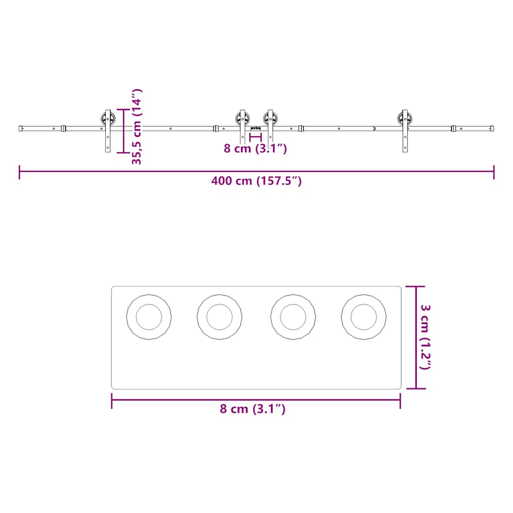 Doos met onderdelen voor schuifdeur 400 cm staal zwart