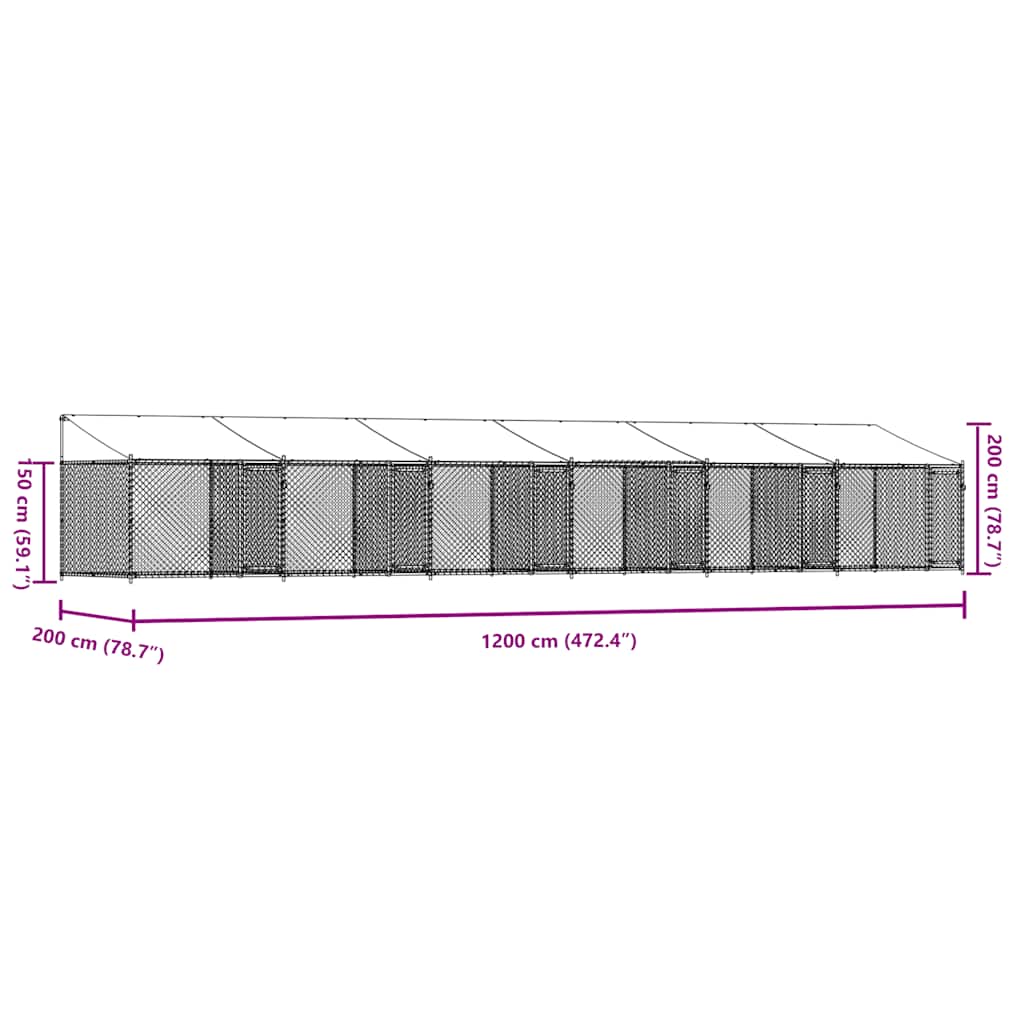 Hondenhok met dak en deuren 12x2x2 m gegalvaniseerd staal grijs