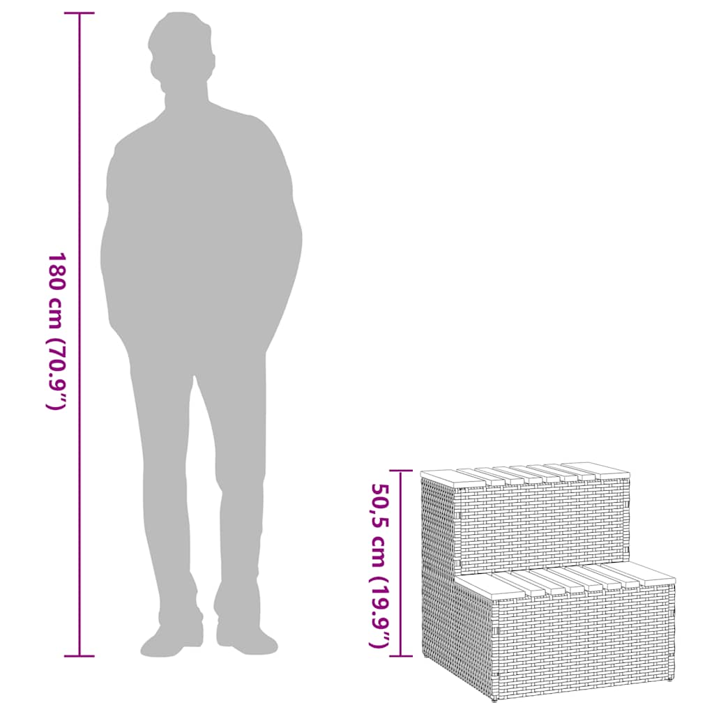 Hottub-opstap 50x50x50,5cm poly rattan&massief acaciahout beige