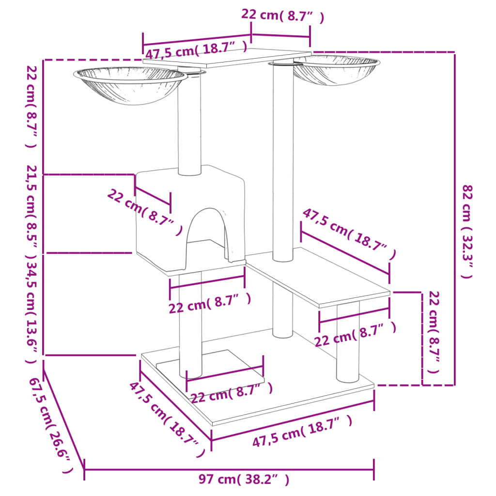 - Alles-in-één kattenmeubel: het kattenmeubel met meerdere niveaus heeft 2 mandjes, 1 huisje en platforms, waardoor je katten een perfecte plek hebben om te klimmen, te zitten, te krabben, zich te verstoppen en ook te ontspannen.