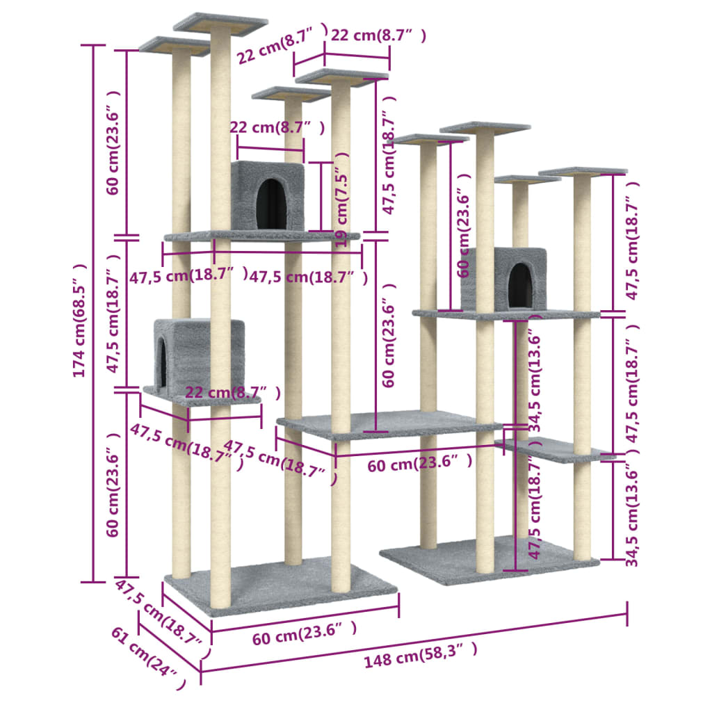 Kattenmeubel met sisal krabpalen 174 cm lichtgrijs