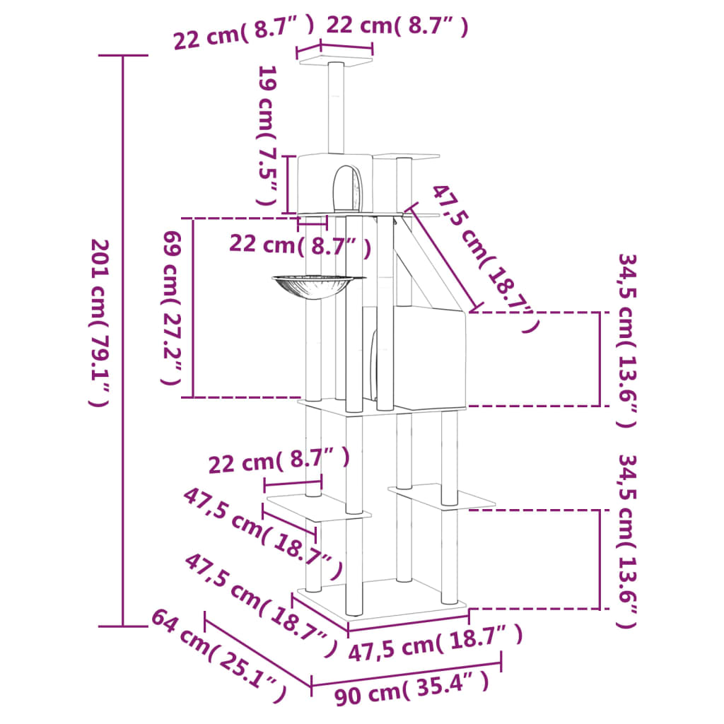 Kattenmeubel met sisal krabpalen 201 cm donkergrijs
