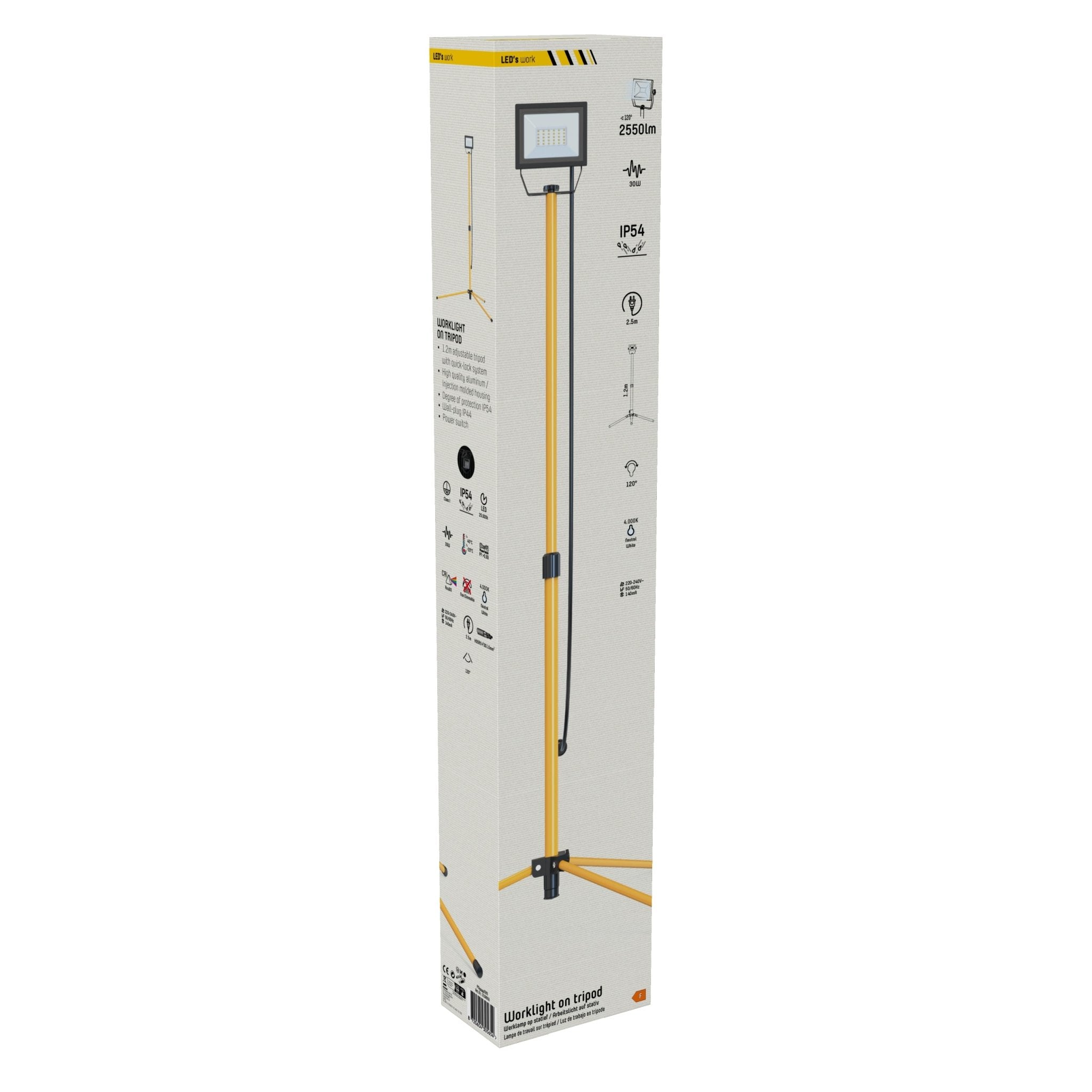LED's Work 1 x 30W ProWork Tripod LED Bouwlamp op statief - In hoogte verstelbaar - 3180 lm