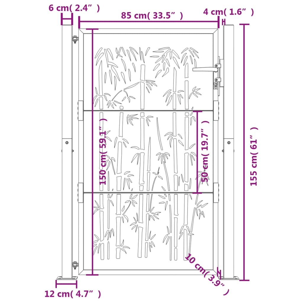 Poort met bamboe-ontwerp 105x155 cm cortenstaal