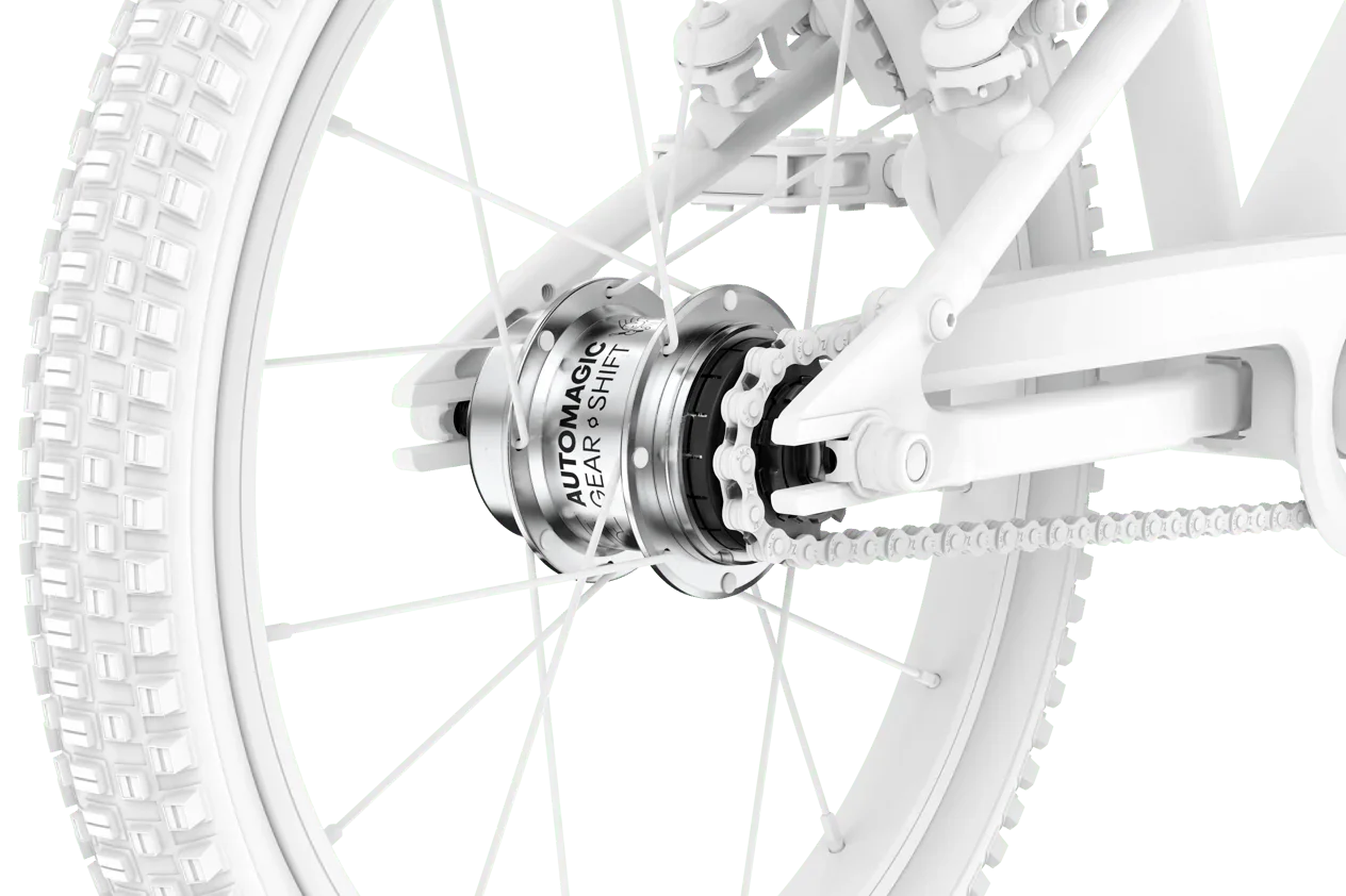 Is your child always out and about loving life on their bike? The woom GO 3 AUTOMAGIC was made for enthusiastic young riders just like them! This special bike has two gears, but your child doesn't have to worry about switching between them. The automatic hub gearing takes care of that for them. They can ride easier uphill and up their speed on the flat without spinning out. It's magic. AUTOMAGIC!
